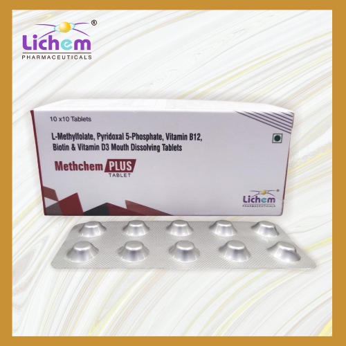 | METHCHEM PLUS Tab | L-METHYLFOLATE 1MG+PYRIDOXAL 5 PHOSPHATE 0.5MG+VIT B12 1500MCG+VIT D3 2000IU+BIOTIN 5MG | 10*10 (Alu Alu pack) | View Catalog | View Product |